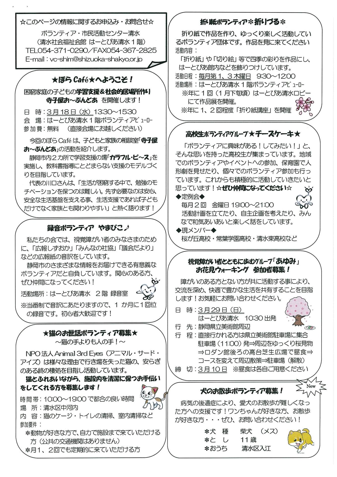 しずおか・しみずボラセン情報 3月号が完成しました!!