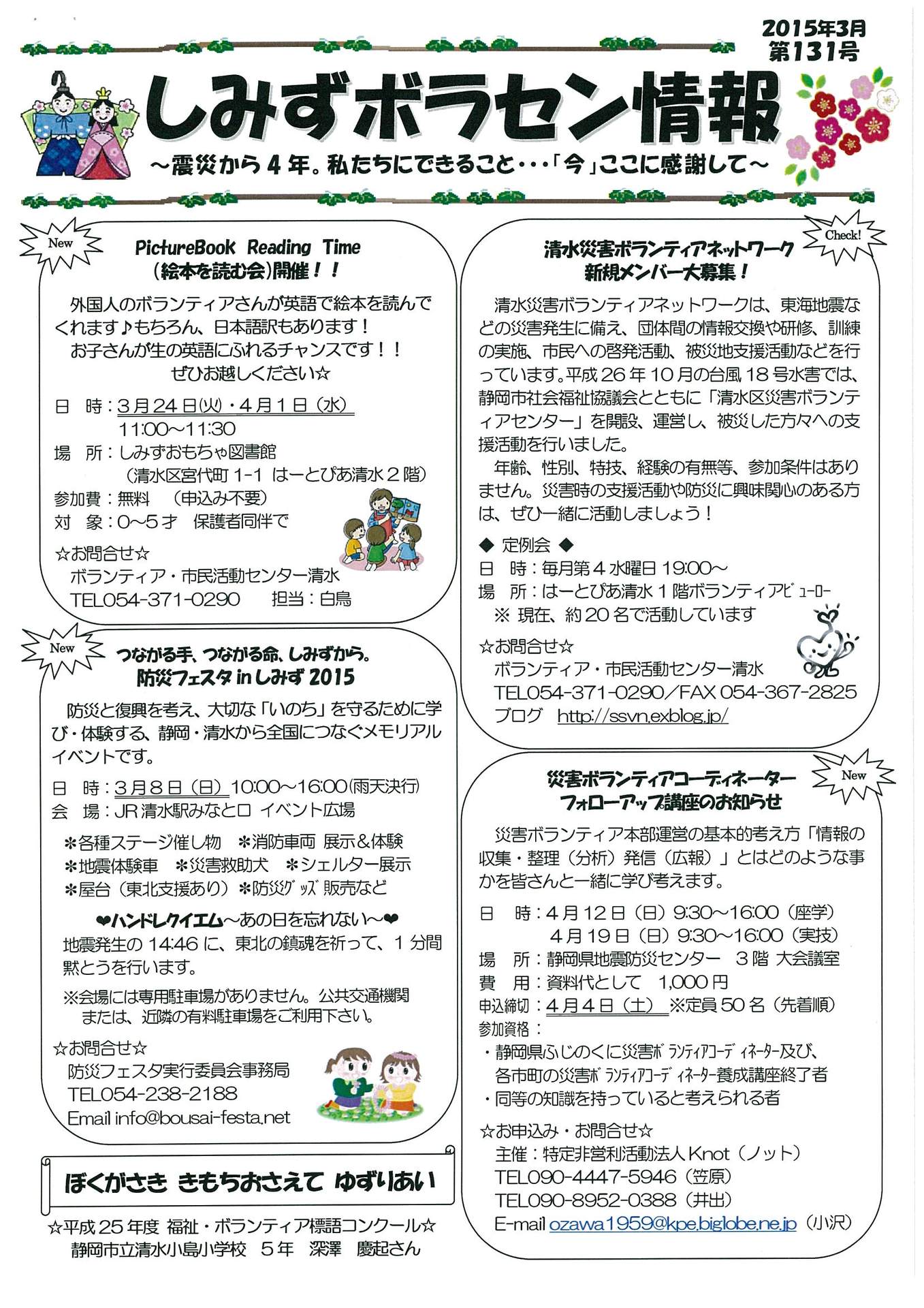 ☆しずおかボラセン情報 2015年3月号☆