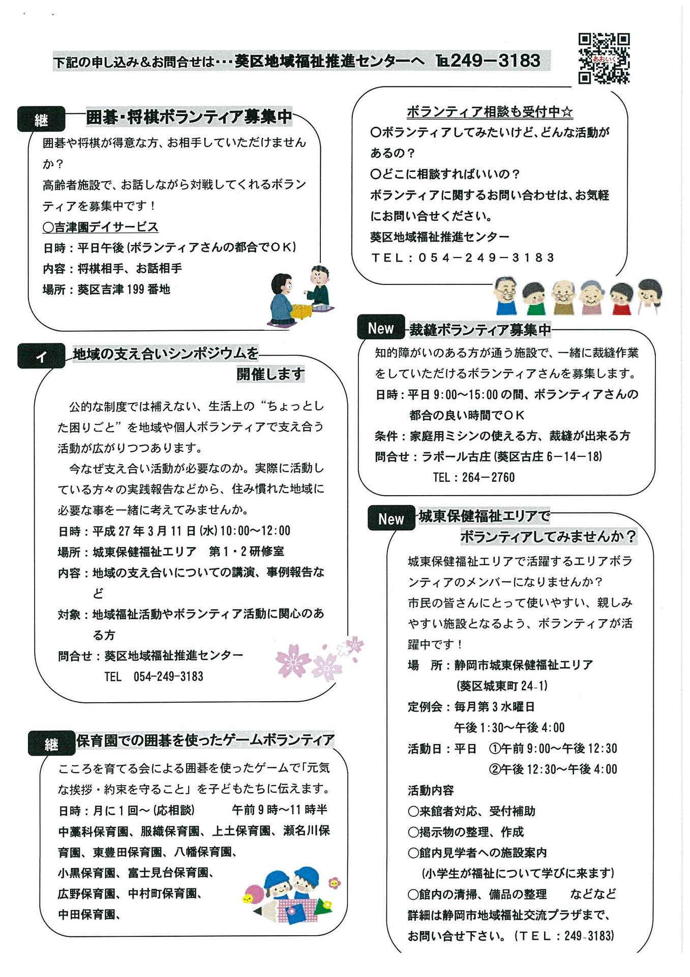 『ボラセン情報』は静岡市社会福祉協議会に寄せられた様々な情報を掲載しています
