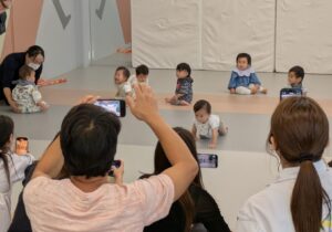 当日は、静岡中央子育て支援センターや児童館の職員によるリトミックやはいはいレースを行いました。