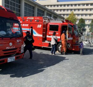 当日は、正にコンセプトのとおり、消防署の協力により城北小学校のグラウンドに多くの消防車が集結する一方、別の一角では城北地域包括支援センター、東部保健福祉センター、七間町かけこまちの3つの機関による相談コーナーが設置され、多くの相談者が訪れました。また、子育て支援に力を入れる地区社協が設けた『お菓子釣りゲーム』には多くの親子連れが集まり、さらに体育館では、NPO法人のオーケストラが出演し、様々な世代の皆さんが迫力のある生演奏を楽しみました。