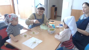 さあ、みんなでクッキング! みんな上手にできるかな?