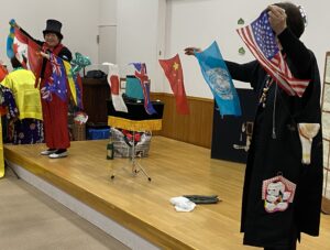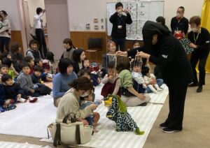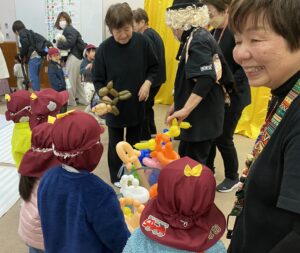 毎年開催されているこの企画は、芸能披露団体の「ニコニコクラブ」さんに芸能を披露していただくというもの。お正月という季節にちなんで、小獅子舞や、大黒舞など縁起の良い演目をはじめ腹話術、マジックやバルーンアートなど子どもたちも大喜びの演目で会場を沸かせてくれました。