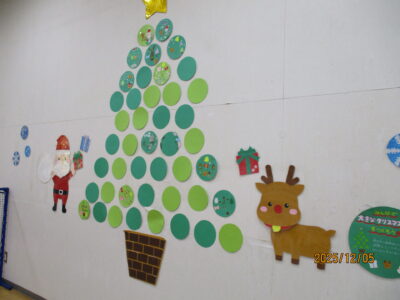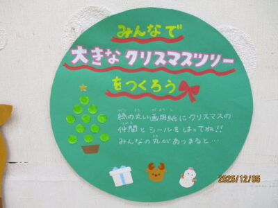 今月は、壁面もクリスマス向けて『みんなで大きなクリスマスツリーを作ろう』です🎅