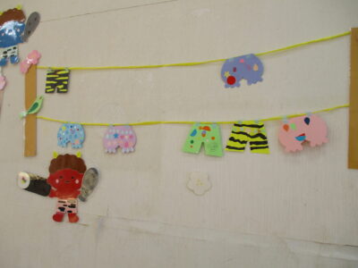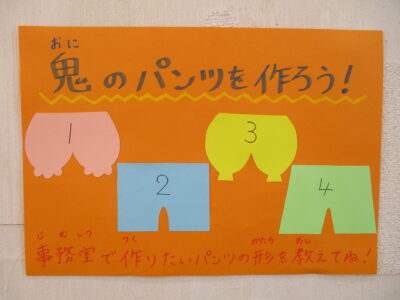 中島児童館でも、2月の中頃まで『鬼のパンツを作ろう!』の壁面工作をしています。