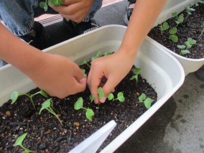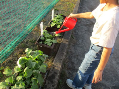 種まきから収穫までの過程を体験 🙂 みんなで水やりをして、葉っぱもぐんぐん育ちました✨
