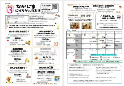 児童館だより訂正のおしらせ 中島児童館 2026年03月26日 すでに配布している3月のおたよりのカレンダーに誤りがありましたので訂正いたします。 3月30日(月)休館日の記載がありませんでしたが、休館となります。 【訂正】3月30日(月)・休館日 混乱を招いてしまい、申し訳ありません。訂正をお願いします。 3月のおたより↓