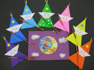 午前11:00~、午後15:00~の1日2回あそびの会の中で、このような、かわいい魔女さんが作れますよ♡